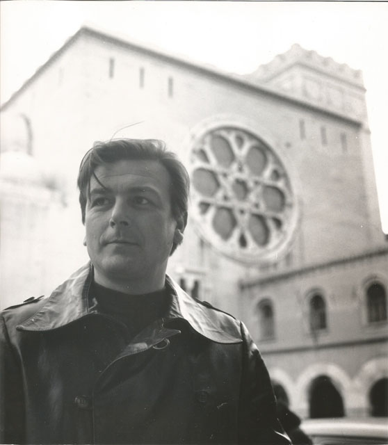 • Mottola, Alfonso, Fulvio Tomizza con la Sinagoga sullo sfondo, post 1965, gelatina ai sali d'argento su carta, CC BY-NC-SA
