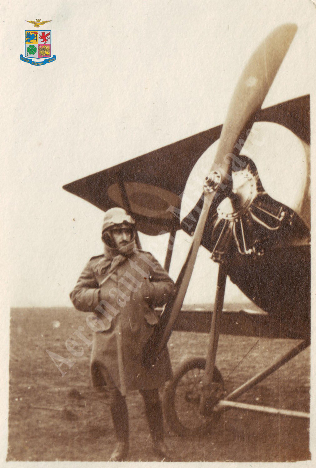 • Giovanni Sabelli in posa fotografica davanti al velivolo francese  Nieuport 11, Gelatina ai sali d'argento, CC BY-SA
