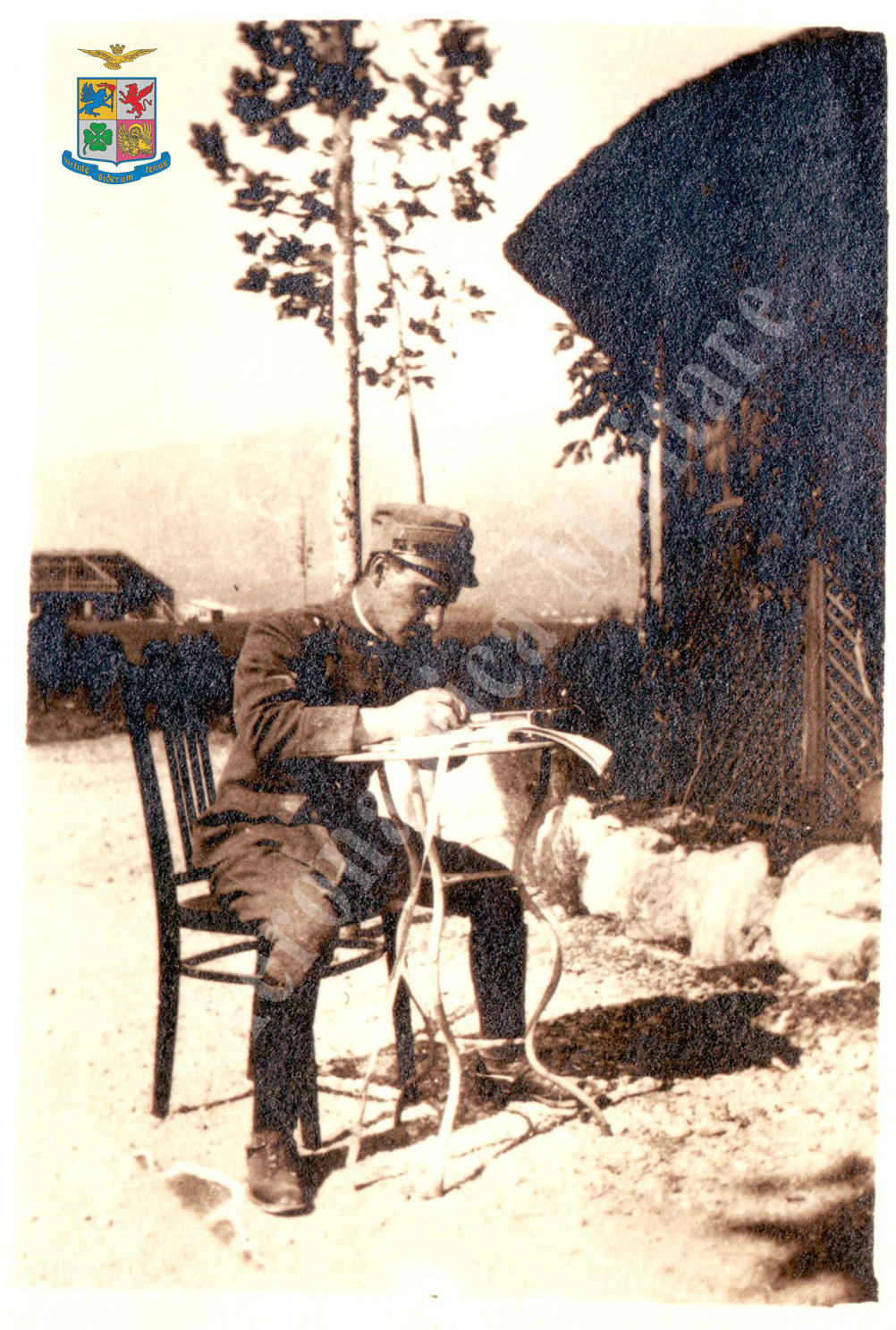 • Aviano. Il sottotenente Giovanni Sabelli in divisa seduto su una sedia intento alla scrittura epistolare, Gelatina ai sali d'argento, CC BY-SA