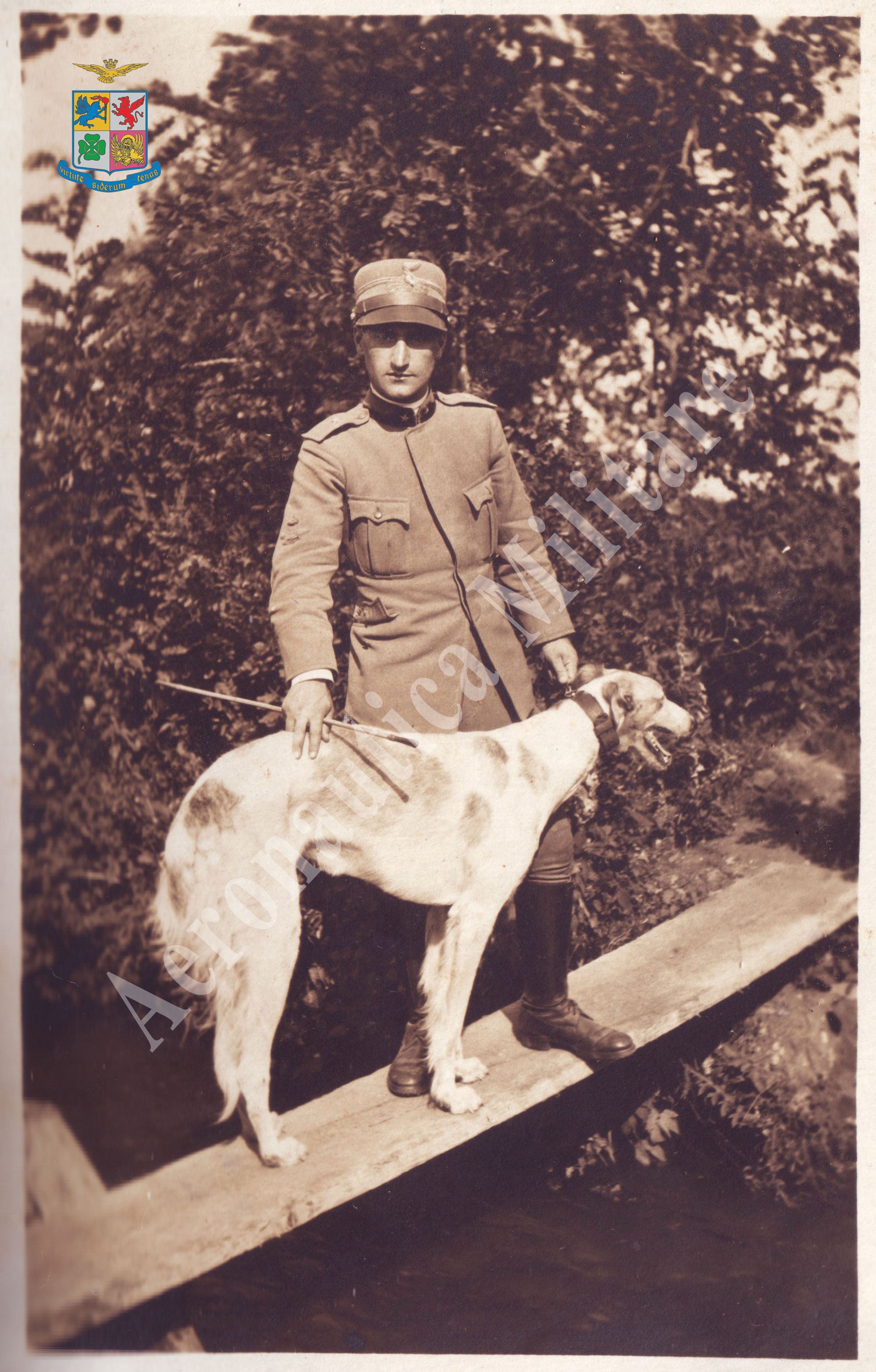 • Giovanni Sabelli in divisa lungo un corso d'acqua in compagnia di un cane, Gelatina ai sali d'argento, CC BY-SA
