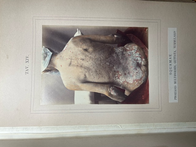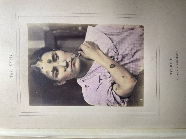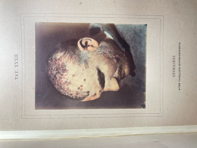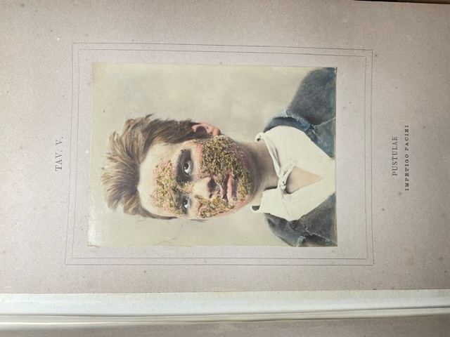 Casimiro Manassei (Civitavecchia 1824 – Roma 1893) è stato una importante figura in ambito medico, ed è considerato il riformatore della dermatologia italiana. Molto meno noto è il suo apporto alla fotografia. Nel 1876-77 pubblicò a Roma, in due volumi, la Raccolta di casi clinici delle malattie della pelle e sifilitiche curate nella clinica e dispensario, primo atlante fotografico medico in Italia. I due volumi, in quarto, contengono 76 albumine colorate a mano (con una eccezione), di 137x99 mm. Le foto, accuratamente montate su cartoncino, sono di autore ignoto (non può essere escluso lo stesso Manassei), ognuna corredata dalla descrizione a stampa del caso clinico. L'opera di Manassei, anche tipograficamente un prodotto di notevole qualità, fu premiata con una medaglia all'Esposizione di Parigi del 1878. Nel 1868, sempre a Parigi, era uscita la Clinique photographique de l'Hopital Saint-Louis, uno dei primi libri di medicina illustrati da fotografie originali ed il primo in assoluto di dermatologia. Il volume, autori Alfred Hardy e Arthur de Montmeja, conteneva nella sua prima edizione 49 fotografie di pazienti, 35 delle quali colorate a mano.