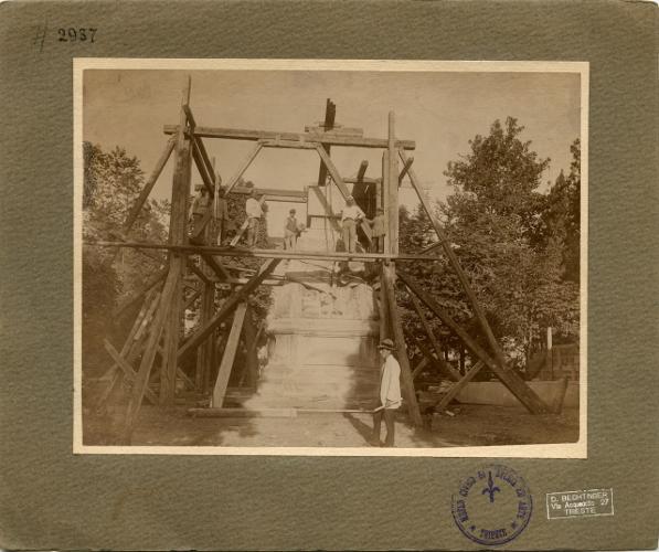 • Foto Bettini - Bechtinger,  Demolizione Monumento dedizione all'Austria a Trieste, 1919, gelatina ai sali d'argento su carta, CC BY-NC-SA