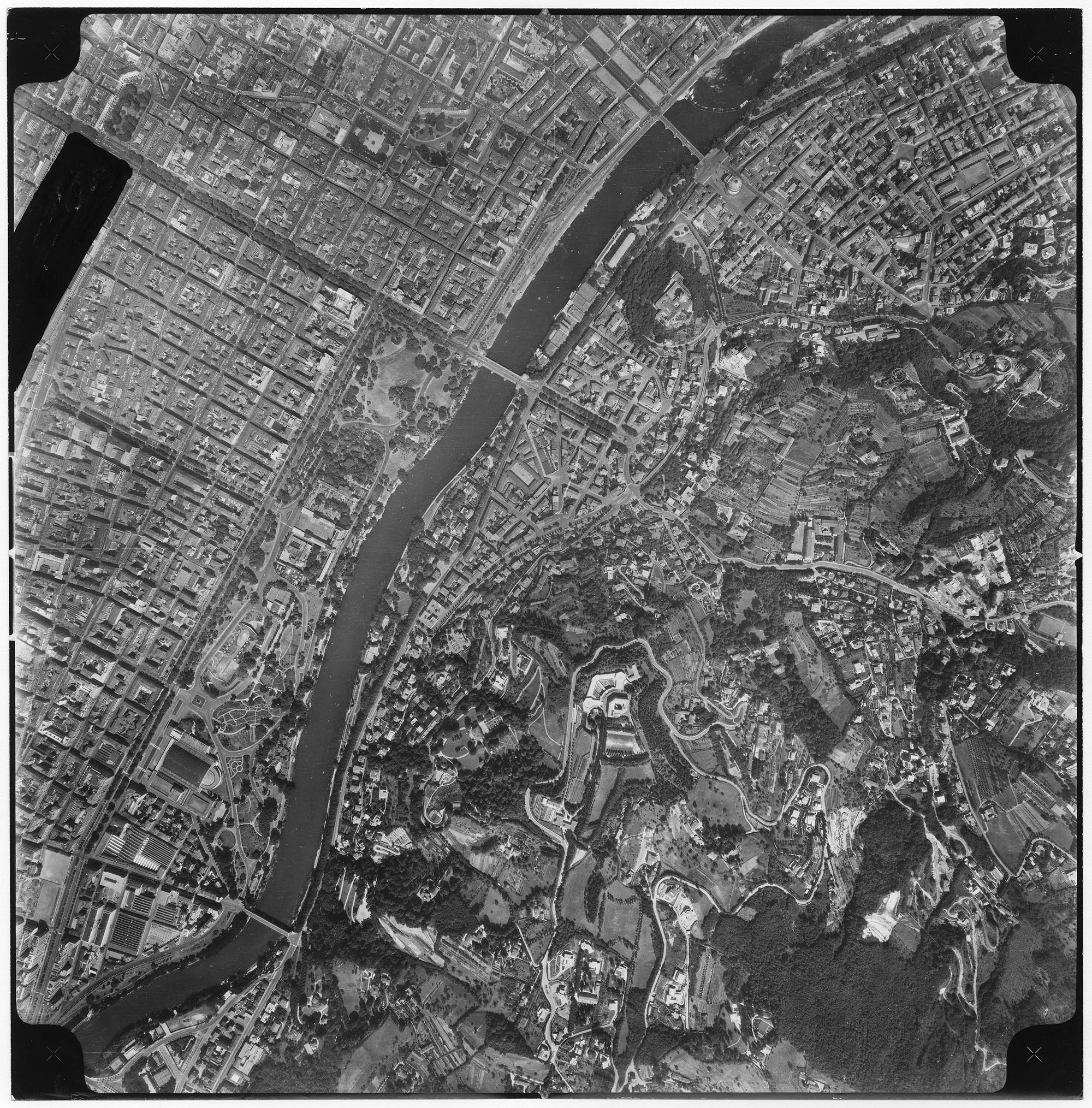 • Ente Italiano Rilevi Aereofotogrammetrici Firenze, Veduta aerea della Circoscrizioni 1 e 8 Centro-Crocetta e San Salvario., carta/gelatina, CC BY-SA