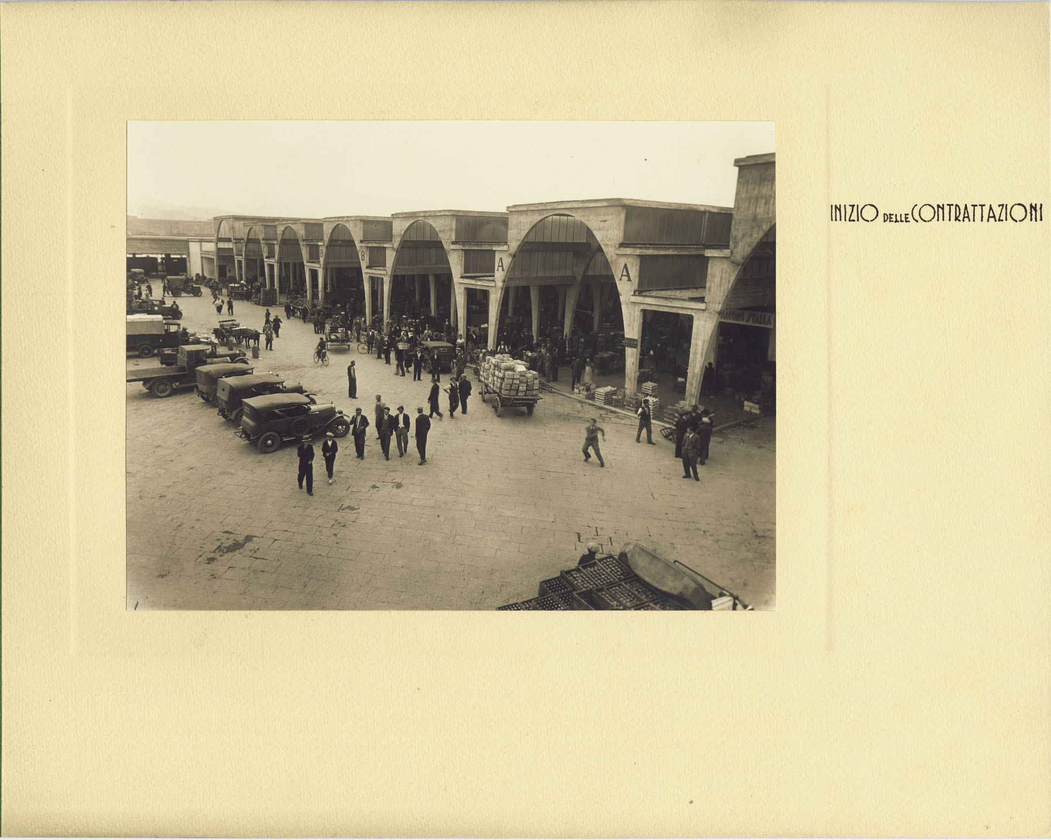 • anonimo, Veduta del Mercato Ortofrutticolo all'Ingrosso (MOI), in piazza Galimberti (già piazza Balilla) a Torino, carta/gelatina, CC BY-SA