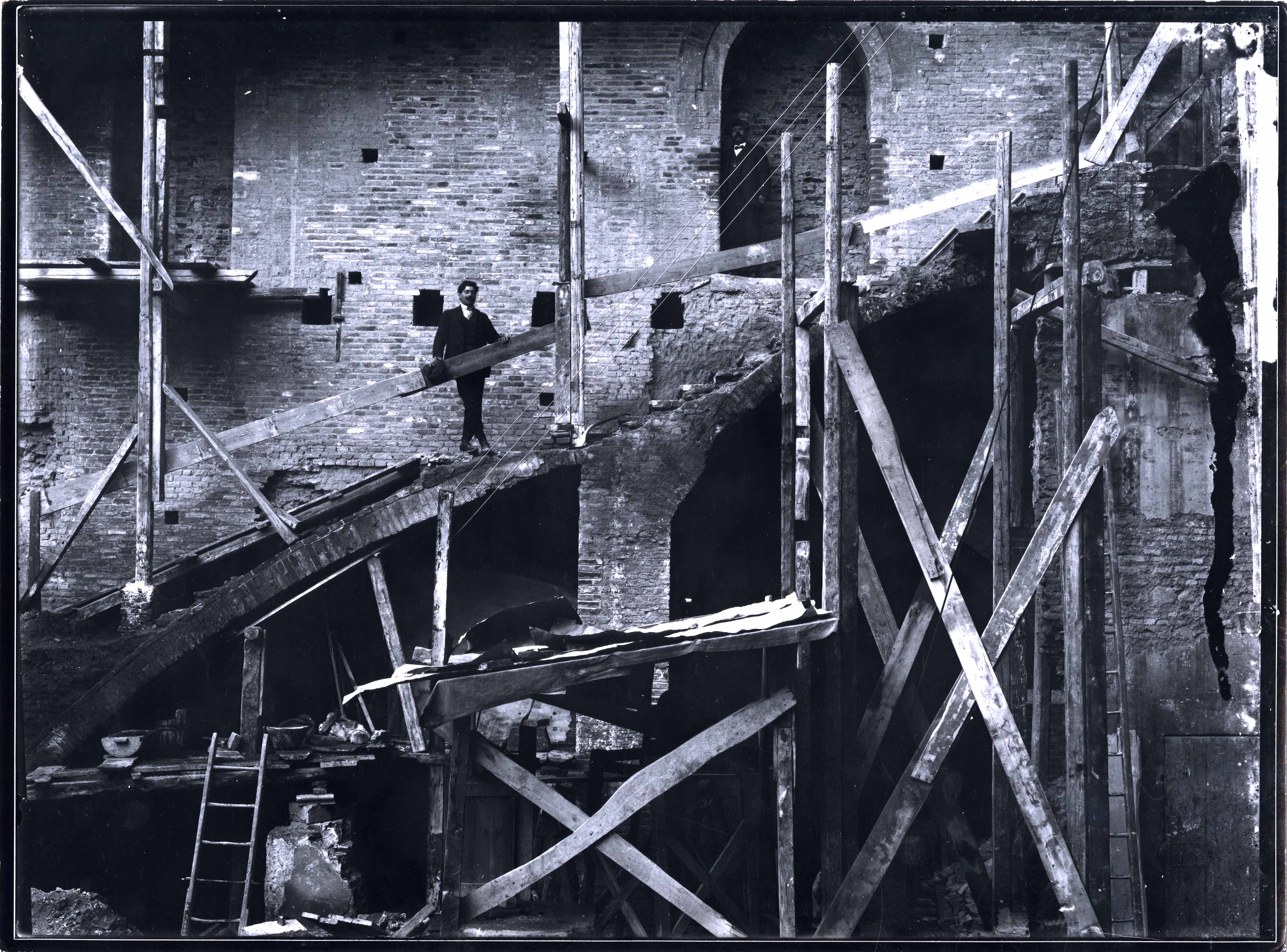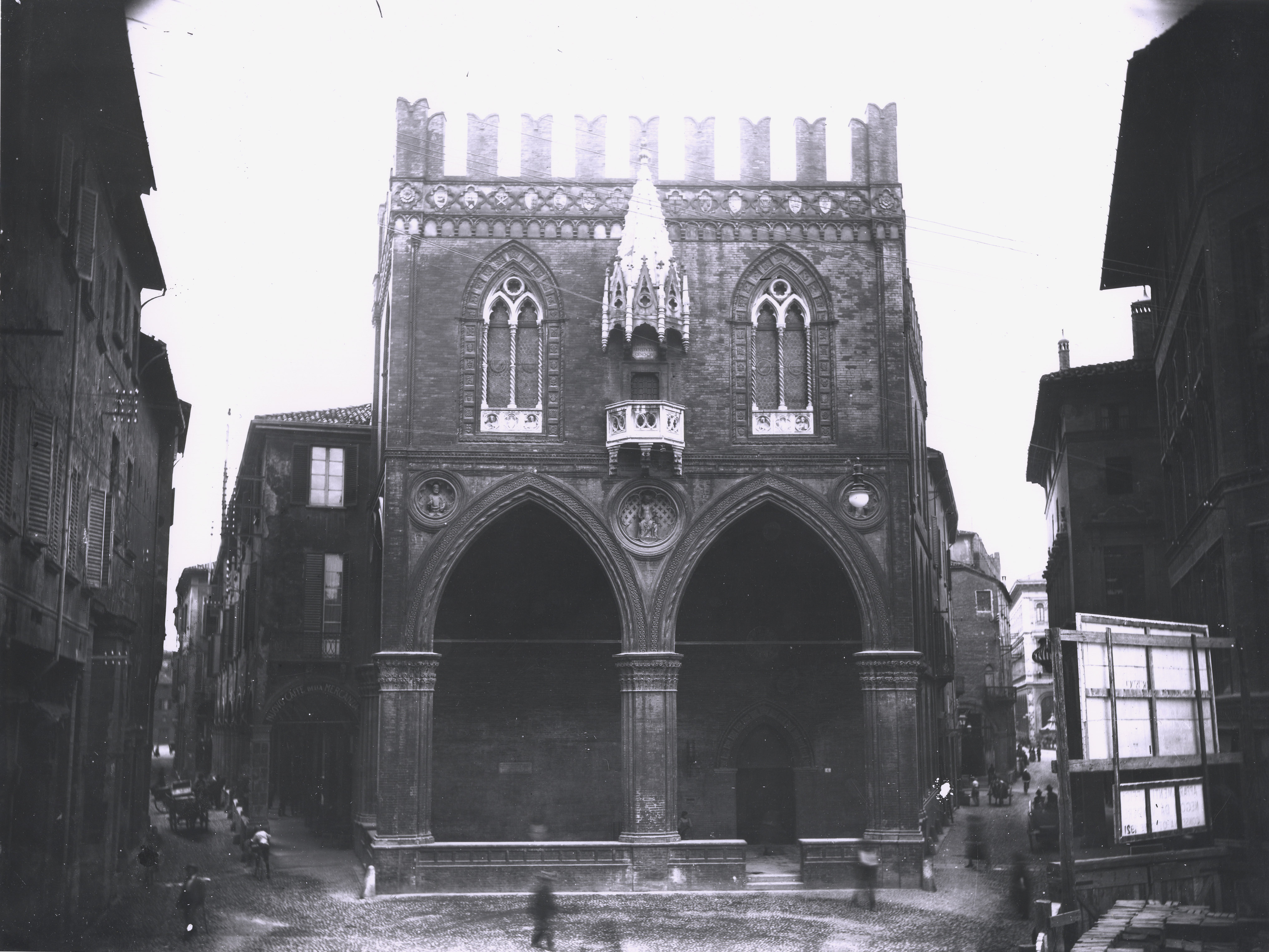 La panoramica offerta dalle 34 lastre negative del fondo Ragazzi interessa diversi e noti luoghi della Bologna storica nell’arco di tempo compreso approssimativamente tra il 1904 e il dicembre 1915 (anno in cui è datata l’ultima ricevuta conservata) e comunque non oltre il 1918, quando cessa l’attività della ditta. Attraverso le ricerche d’archivio è stato possibile, in molti casi, trovare le date di esecuzione delle fotografie portando nuovi e precisi elementi alle vicende riguardanti le profonde trasformazioni attuate nel centro storico di Bologna. La documentazione riguarda i lavori al Palazzo di Re Enzo e del Podestà con lo scoprimento della curia potestatis e il recupero della trecentesca cappella di Santa Maria dei Carcerati; il rifacimento della facciata del Palazzo dei Notai e del corridoio merlato del Palazzo Comunale. Le riprese sono state effettuate da angolazioni differenti e in momenti ed anni diversi, probabilmente per l’esigenza di avere una panoramica progressiva dello stato dei lavori. Ai Lanzoni vennero commissionate anche riprese della facciata della chiesa di San Domenico prima e dopo il restauro; della chiesa di San Giacomo Maggiore prima dello scoprimento del tetto ad embrici e durante gli interventi sulla facciata; della chiesa della Madonna del Baraccano appena restaurata e di molti altri noti luoghi storici.