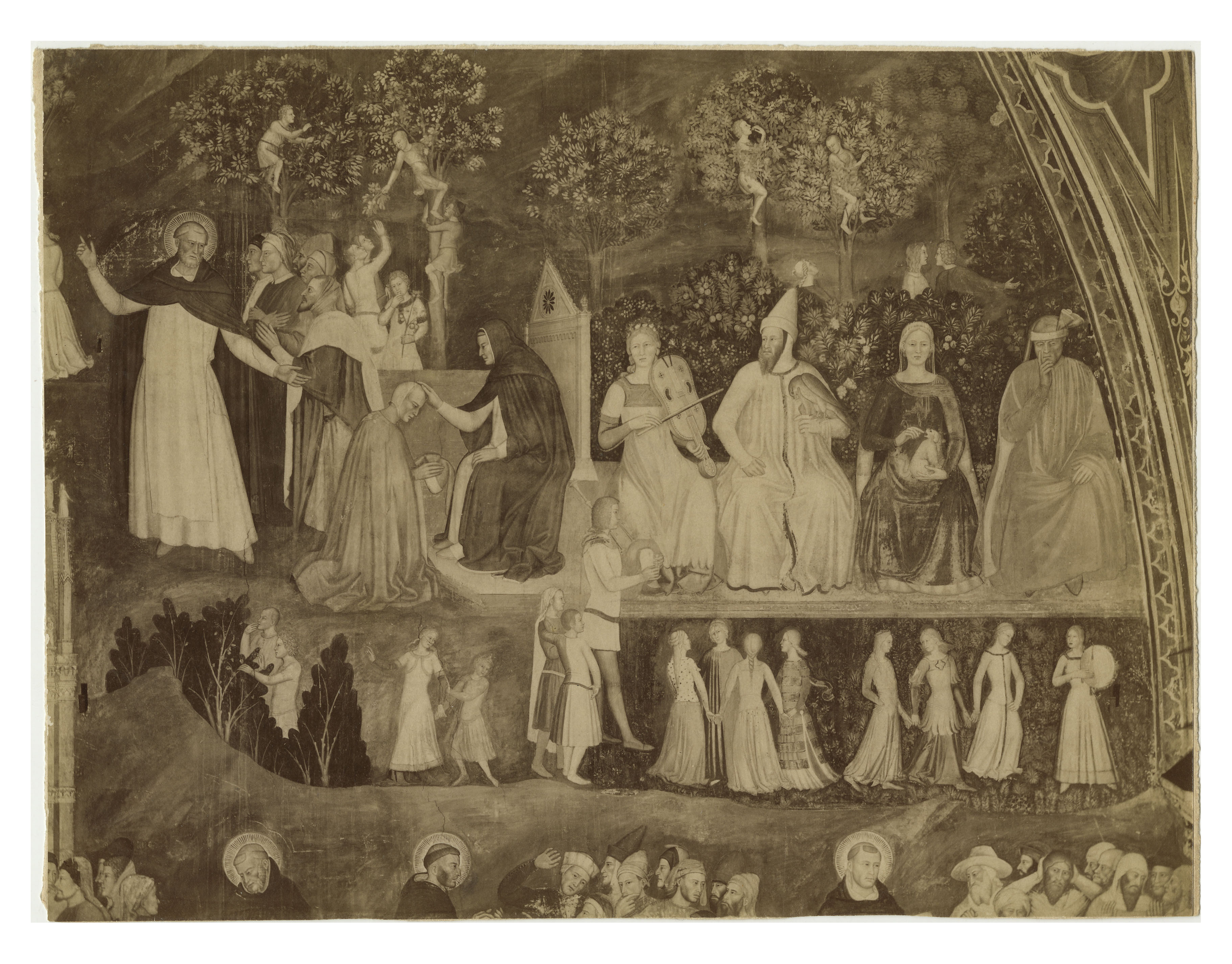 • Fratelli Alinari, Firenze, Chiesa di Santa Maria Novella, Cappellone degli Spagnoli, Andrea da Firenze, Chiesa Militante e Trionfante, part., Albumina/carta, CC BY-NC-ND