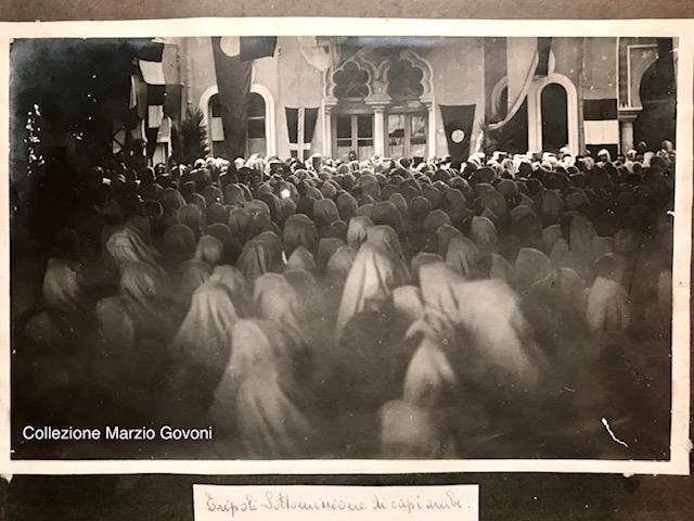 Album fotografico del 1914-18, di grande formato (50x35 cm), con 21 interessanti fotografie con didascalia e 6 cartoline. La sottomissione delle tribù, i festeggiamenti a Tripoli per la liberazione di Gorizia, il Generale Ameglio.