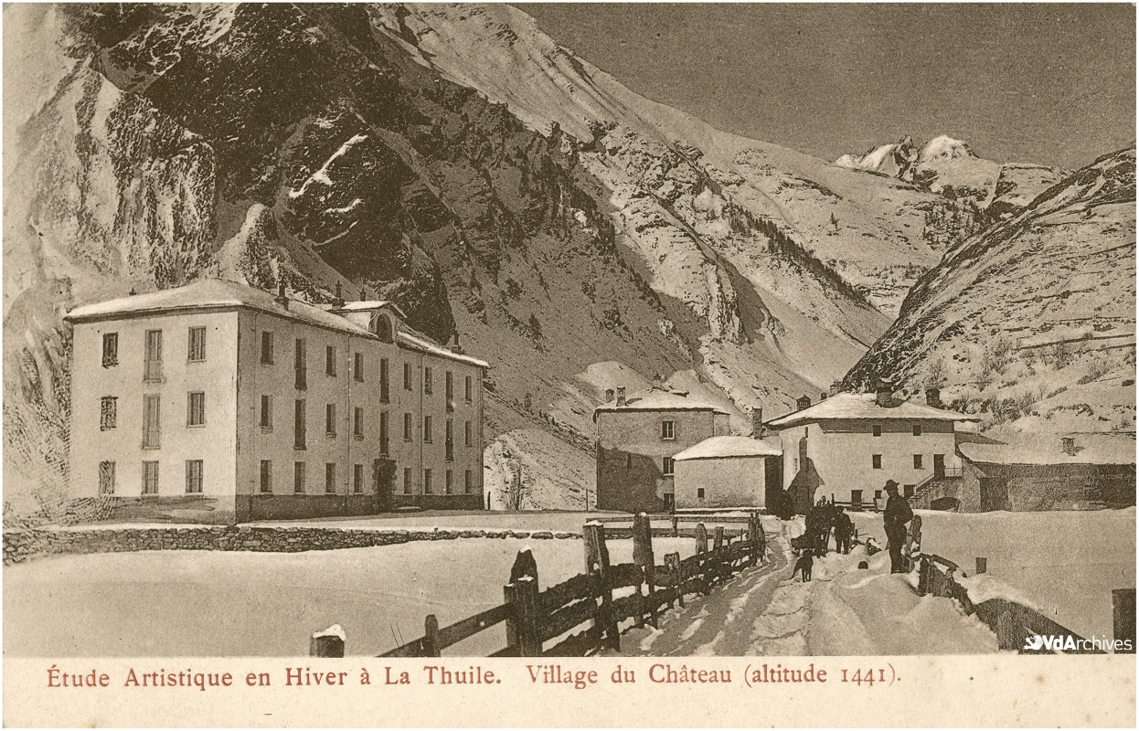 • Autore non identificato, Scorcio invernale con la caserma degli alpini a La Thuile, 1895 circa, Cartolina postale, CC BY-NC-SA