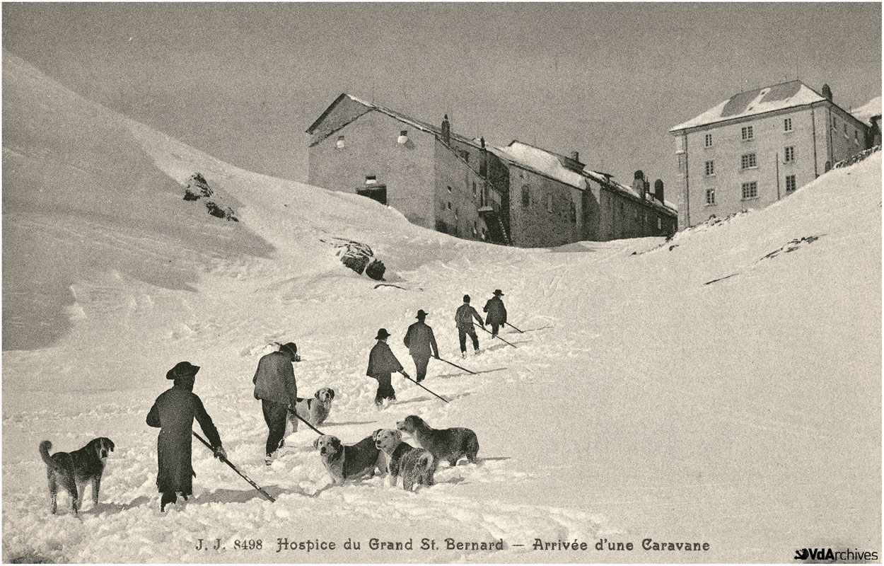 • John Jullien, Attraversamento del colle del Gran San Bernardo, 1905 circa, Cartolina postale, CC BY-NC-SA