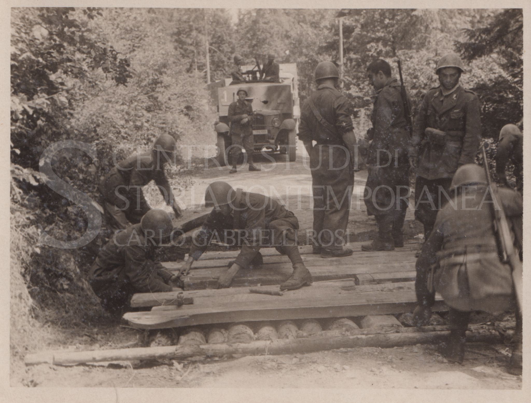 Le foto di varia provenienza rappresentano soldati italiani degli anni ’30 e ‘40 (fanti, alpini, carabinieri). Alcune foto sono il frutto di pose in studio, altre sono state scattate in momenti di lavoro per la costruzione di strade carrabili, altre di rilassamento in foto di gruppo